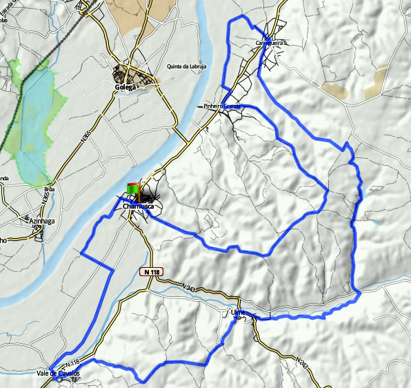 após Vale de Cavalos e à chegada a Chamusca. Ideal para toda a família com alguma experiência de ciclismo.