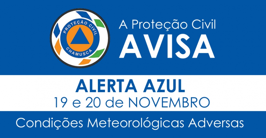 Alerta Azul A Protecção Civil avisa no comunicado 39/2016. Condições Meteorológicas Adversas que determinam a passagem ao estado de Alerta Especial, do SIOPS pa DIOPS, de nível Azul, para o Distrito de Santarém, de 19 a 20 de novembro de 2016.
