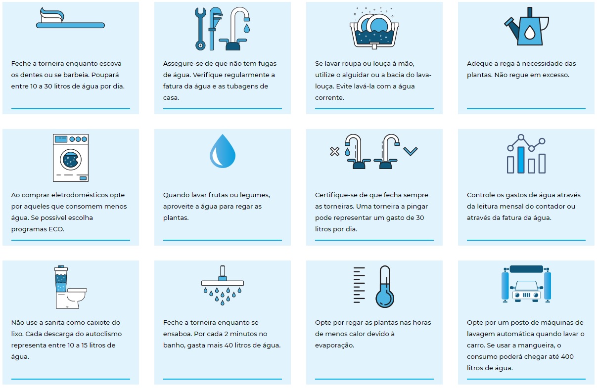 Enumeram-se abaixo, algumas medidas para a redução dos consumos de água, possíveis de realizar por toda a população em geral: