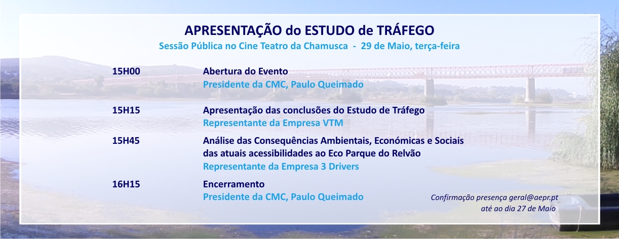 A apresentação do Estudo de Tráfego é de acesso livre, contudo é proposta confirmação de presença por email [Este endereço de email está protegido contra piratas. Necessita ativar o JavaScript para o visualizar.].