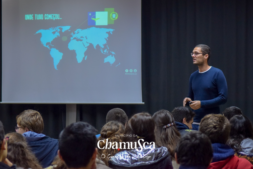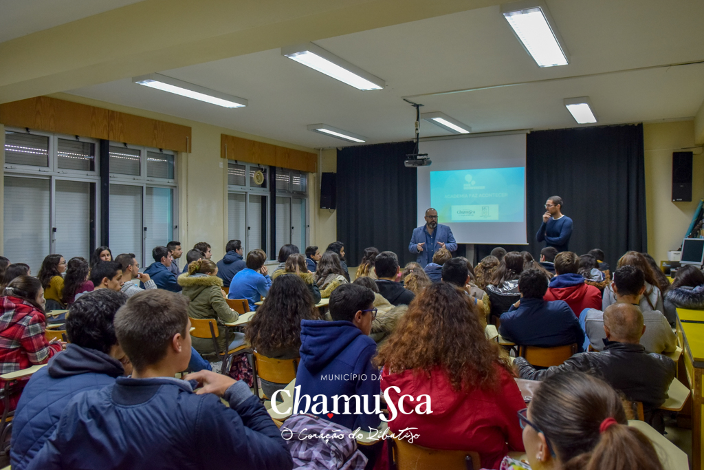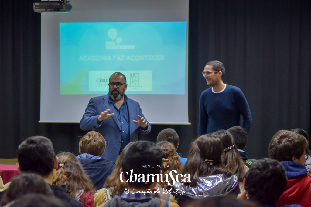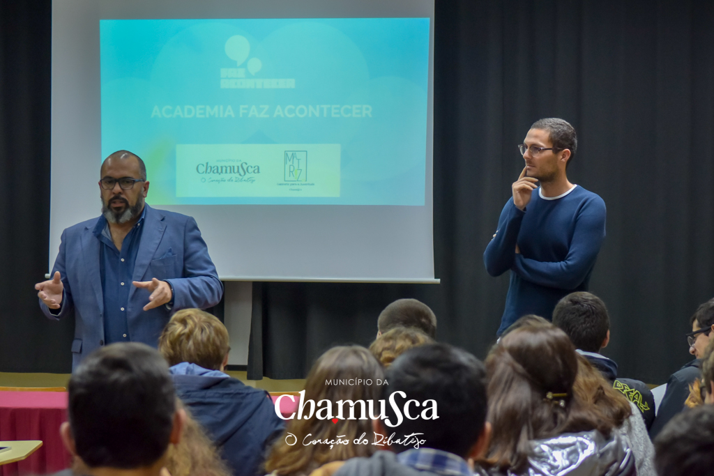 André Leonardo desafiou os jovens a participarem no projeto relatando algumas das histórias da sua viagem ao mundo, viagem que esteve na origem da Academia Faz Acontecer. Explicou ainda que o projeto vai culminar com a realização de um concurso municipal entre as várias ideias participantes na Academia, ideias essas que vão estar depois em destaque no concurso nacional, que se realiza nos Açores com participantes internacionais e os vencedores dos vários municípios onde decorre a Academia. No caminho até ao concurso e ao grande encontro nacional, ainda vão acontecer na Chamusca várias iniciativas: um bootcamp para desenvolvimento das ideias dos jovens; 4 workshops e várias sessões de mentoria especializada para apoio direcionado.