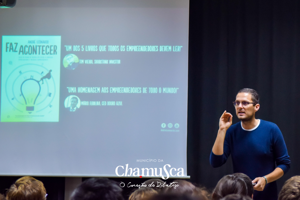 André Leonardo sublinhou que é possível “fazer acontecer" na Chamusca. “Não importa as condições de partida que temos, o importante são as decisões que tomamos e se queremos muito fazer uma coisa”, disse o mentor do projeto Academia Faz Acontecer. Contou também como “fez acontecer” pela primeira vez na sua vida, quando ainda pequeno vendeu flores do jardim de sua casa para poder comprar pastilhas elásticas. “Mais tarde soube que esta minha atitude tinha um nome: empreendedorismo”, recordou André Leonardo, deixando uma mensagem aos jovens: “ninguém pode fazer acontecer por vocês, não vale a pena queixarem-se - ‘Ah! Não me dão emprego! Não me apoiam” - são vocês que têm de fazer as coisas acontecer”.
