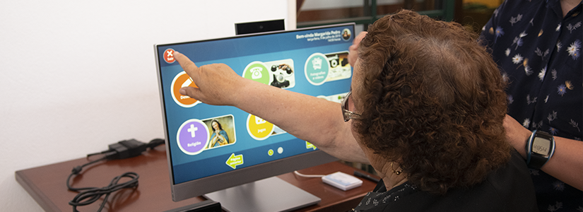 Através da interação com o monitor táctil, os seniores podem ter acesso a jogos que colocam desafios cognitivos e de mobilidade física; podem ver vídeos; ouvir música; ler notícias personalizadas e ajustadas às suas dificuldades de visão e ao grau de literacia; podem ainda desenhar e, acima de tudo, podem interagir digitalmente com os seus familiares, através da partilha de mensagens, de desenhos, de fotografias, de pequenos vídeos e fazendo videochamadas em direto. Do lado de lá, basta ao familiar ter uma aplicação instalada no telemóvel ou computador e, dessa forma, interagir com o seu familiar sénior.