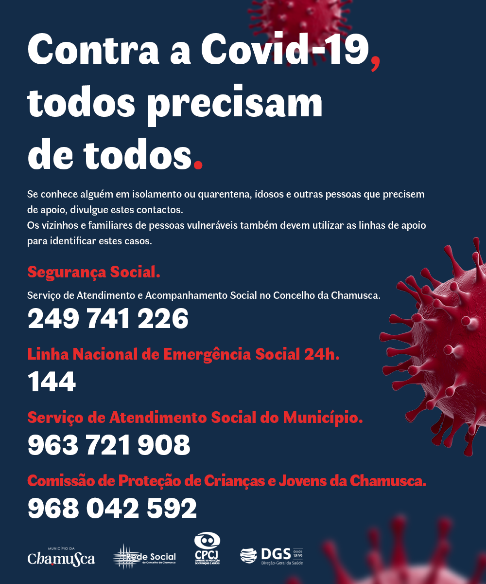 Página Principal > Informações > Notícias > Atendimento Social - Contra a Covid-19, todos precisam de todos Partilhar Tweet Imprimir E-mail Lido 1192 vezes Atendimento Social - Contra a Covid-19, todos precisam de todos