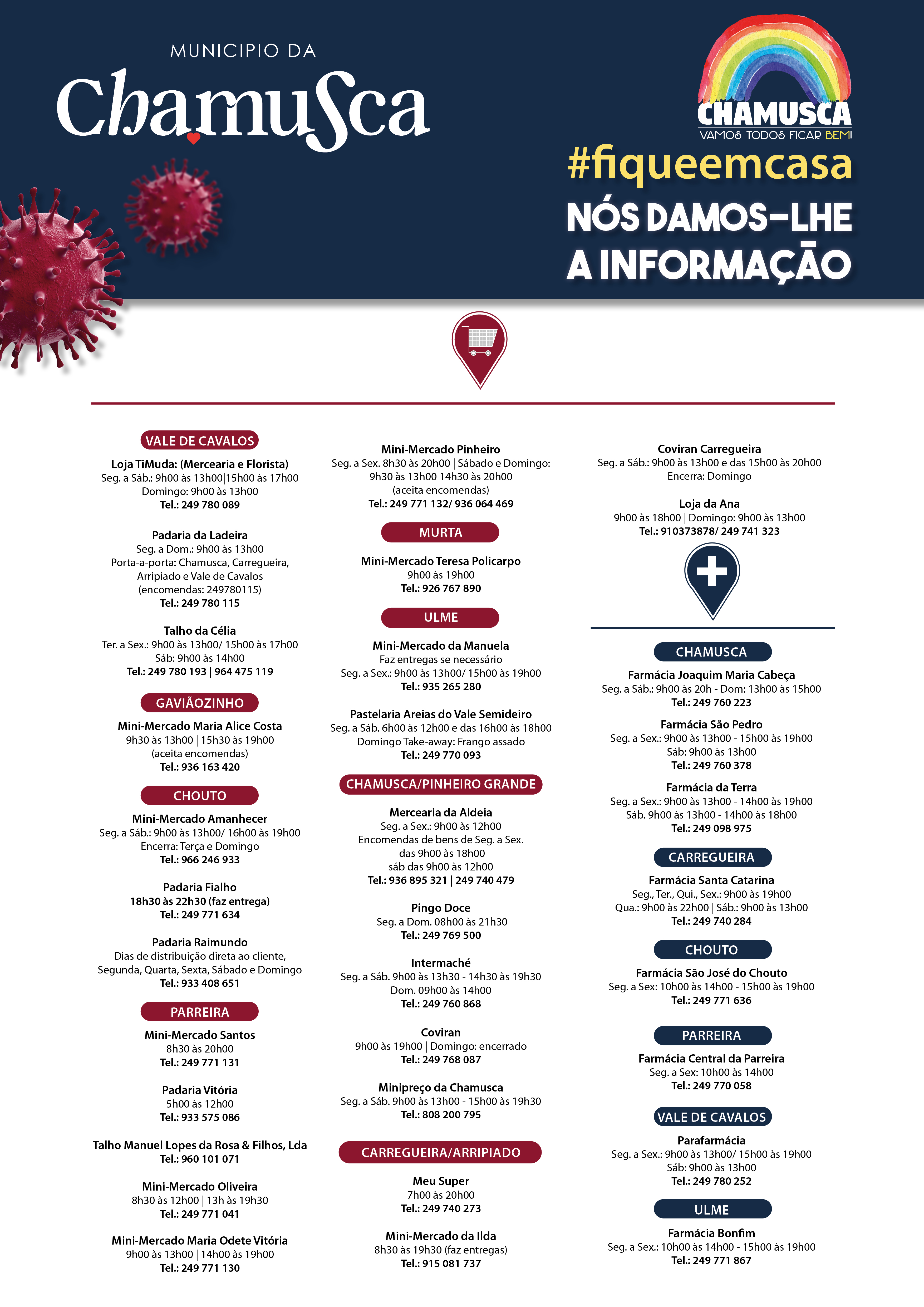 Lista de estabelecimentos comerciais e farmácias em funcionamento no concelho da Chamusca