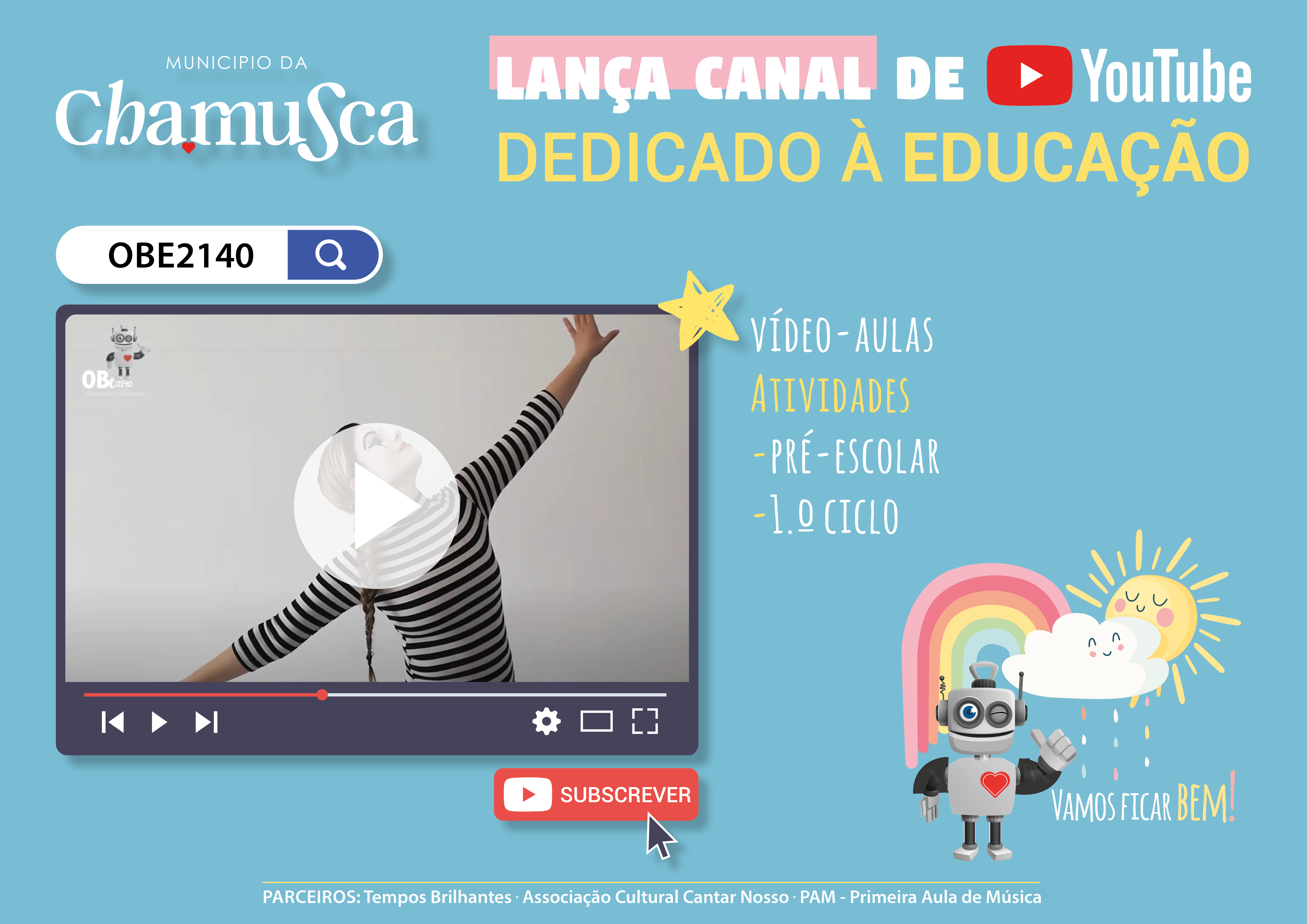 Para aceder ao canal basta fazer pesquisa no Youtube ou google por OBE2140 ou entrar no website da educação do Município da Chamusca