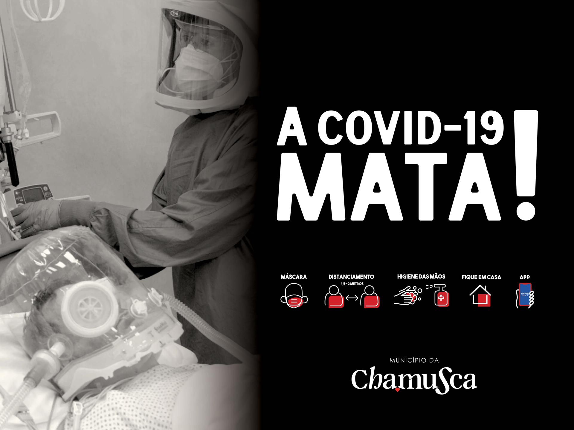 Sob o slogan “A Covid-19 mata!”, a nova campanha assume-se como um alerta sério e impactante sobre os efeitos devastadores da pandemia na saúde pública e para a elevada mortalidade e propagação da infeção pela população, com efeitos muito fortes também no concelho da Chamusca.