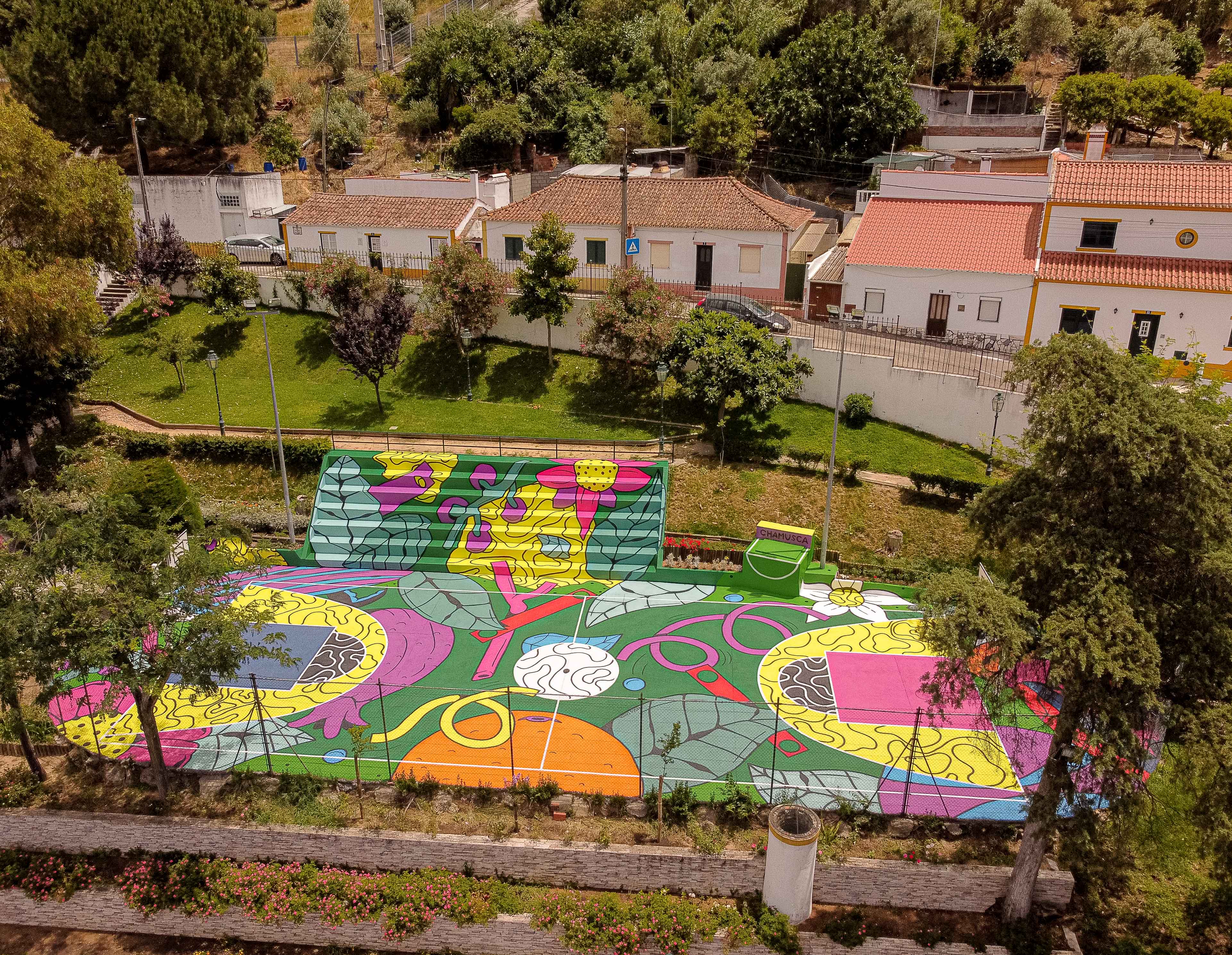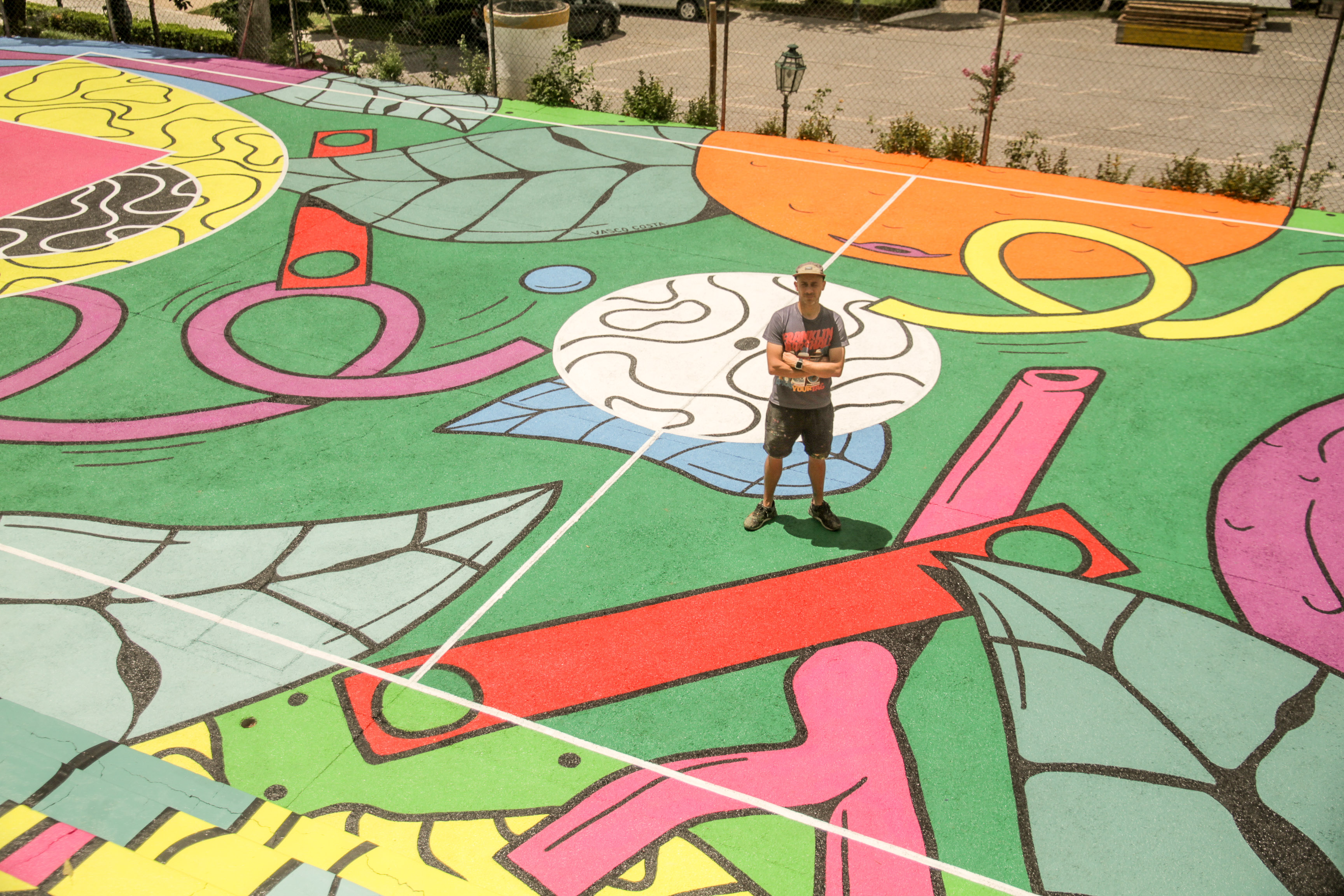 O artista urbano Vasco Costa é o responsável pelo projeto. “Procurei enquadrar e inspirar-me neste jardim e em tudo o que ele comporta, trazendo para o campo vários elementos que podemos encontrar no meio envolvente, conferindo-lhes uma explosão de cores e formas, que é muito a minha imagem de marca. Estou muito contente com o resultado final”, afirma o artista.