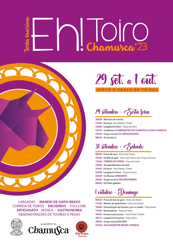 O Município da Chamusca e a Associação Eh! Toiro promovem este ano a 9ª Edição do evento Eh! Toiro - Festa Taurina, que se realiza de 29 de setembro a 01 de outubro, na zona envolvente à Praça de Toiros.