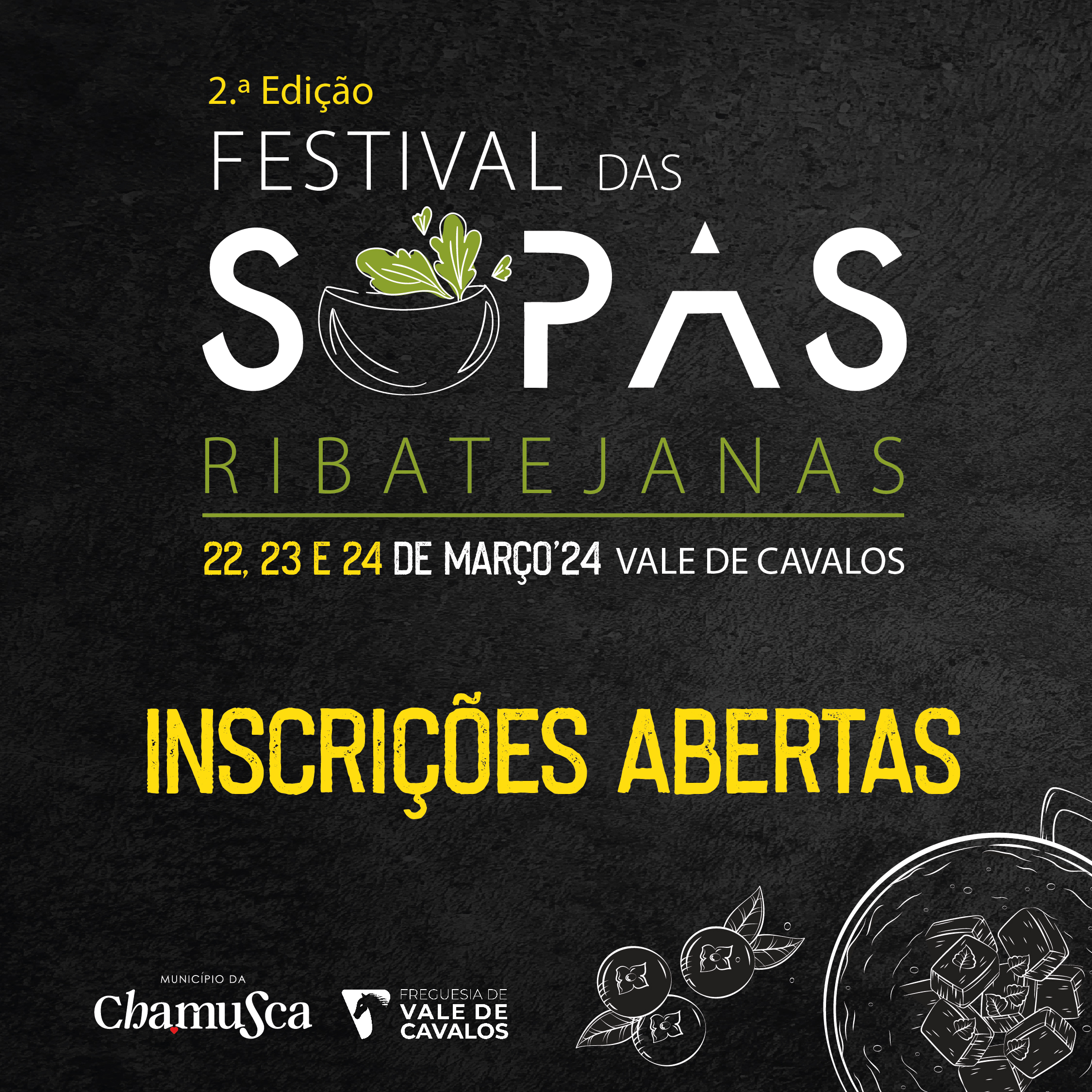 Estão abertas as inscrições para participar no Festival das Sopas Ribatejanas que decorre de 22 a 24 de março, em Vale de Cavalos.