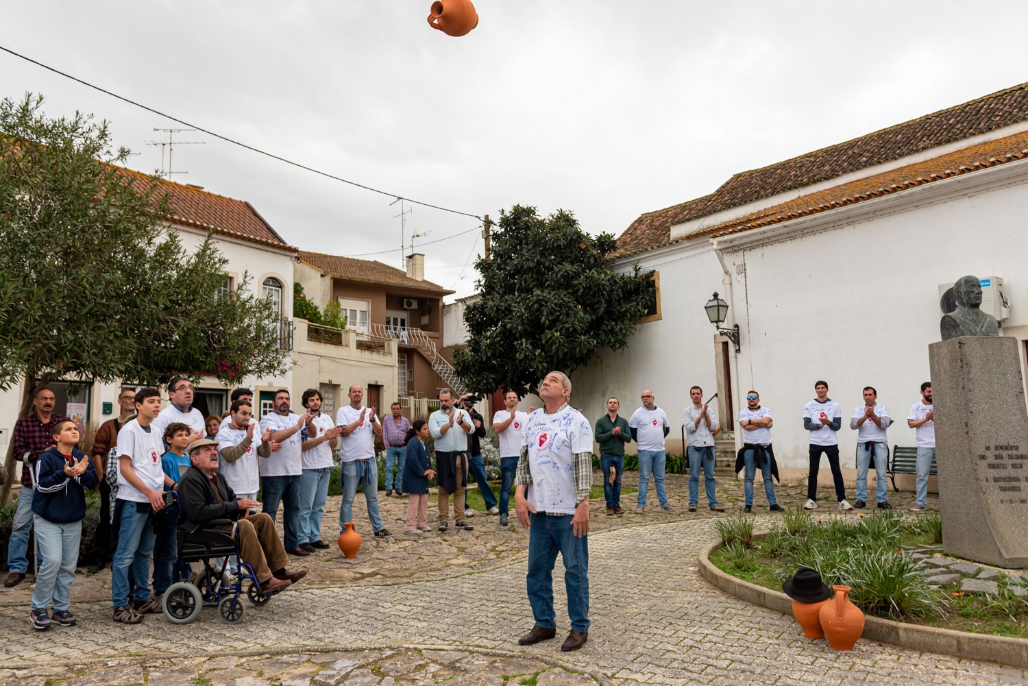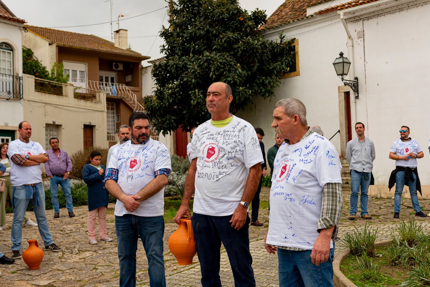 O jogo do Quartão voltou à rua. A tradição chamusquense acontece em Quarta-Feira de Cinzas e consiste em atirar cântaros de barro de mão em mão, tentando não os partir.