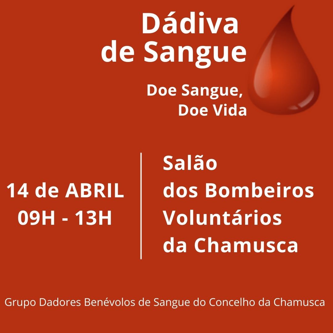 O Grupo de Dadores Benévolos de Sangue do Concelho da Chamusca realiza, no próximo domingo 14 de abril (09h – 13h), mais uma dádiva de Sangue, no Salão dos Bombeiros Voluntários da Chamusca.