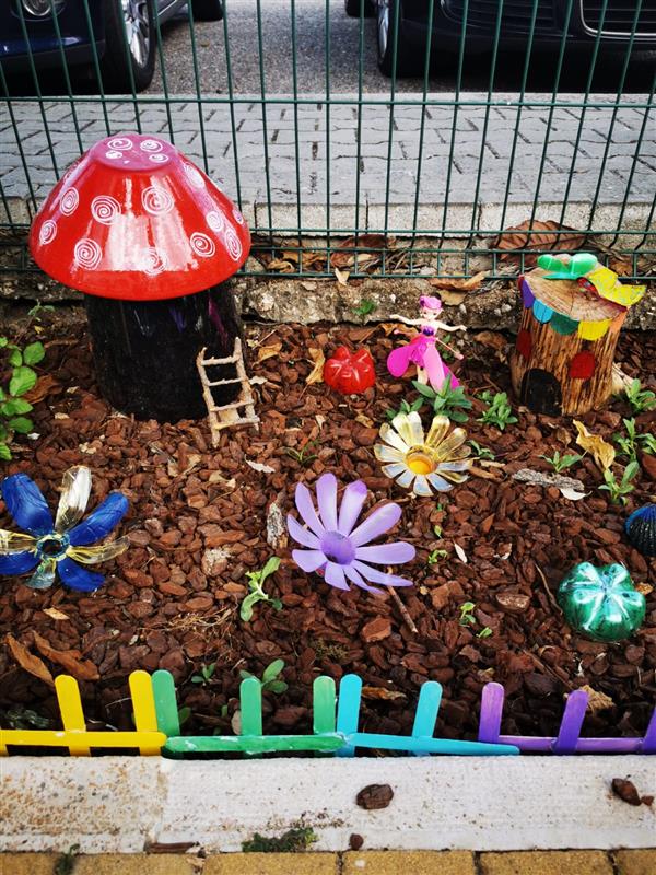 No âmbito do projeto NaturAEC, as crianças da escola da Parreira reutilizaram diversos materiais e desenvolveram ao longo do semestre um pequeno jardim encantado no pátio da escola, numa clara preocupação com o meio ambiente.