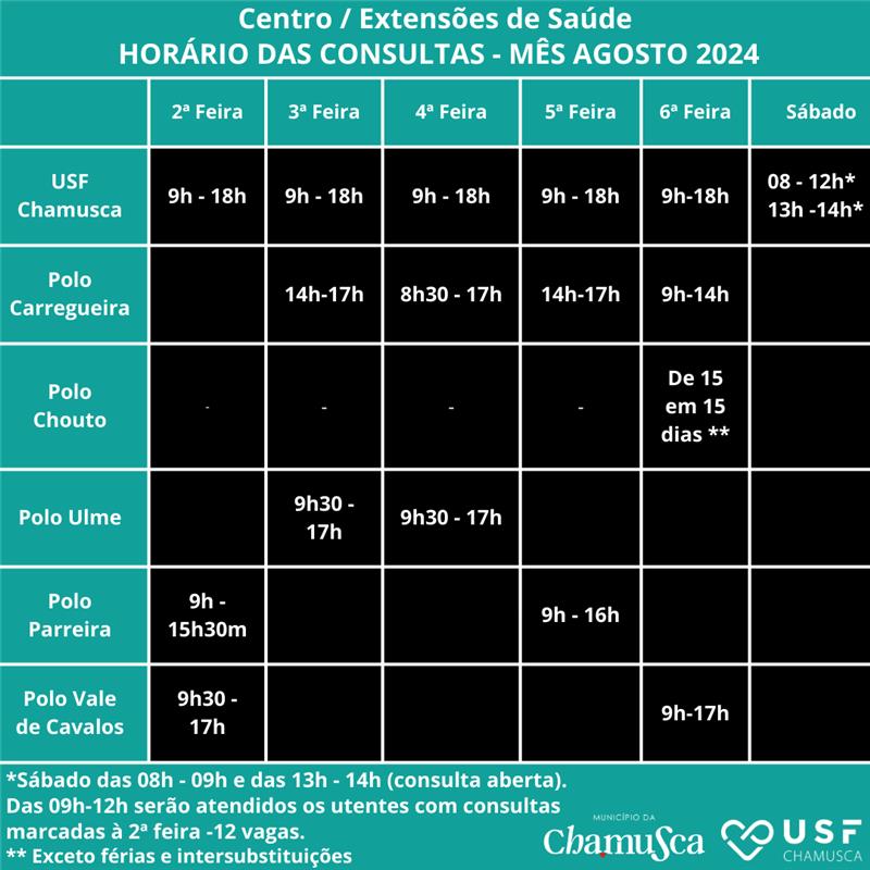As Freguesias do nosso Concelho já têm médico assegurado, nas suas Extensões de Saúde, com consultas regulares. Confira os horários das consultas para o mês de agosto.