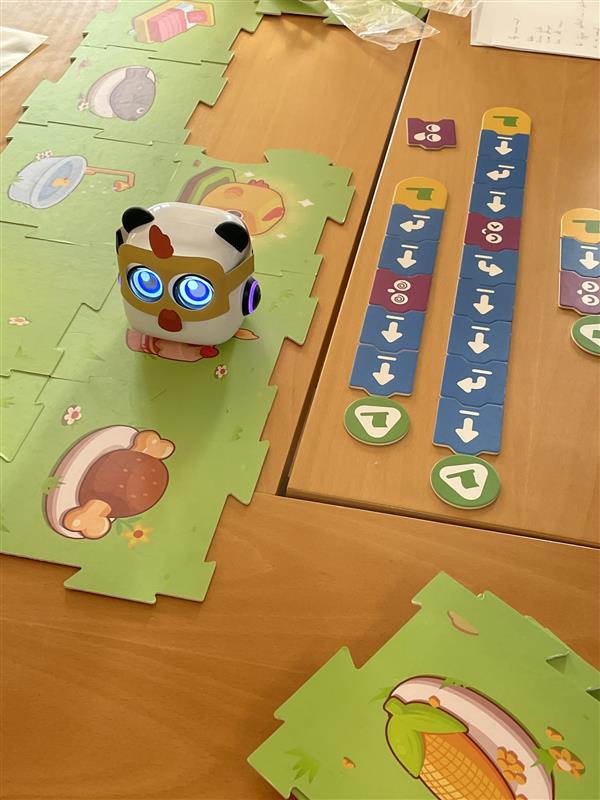 No desafio proposto, os participantes criaram uma história na qual o mTiny, acionado por cartões de comando, executava diferentes ações, tais como mover-se, tocar música e expressar emoções. Esta atividade teve como objetivo reforçar competências na área da programação e da robótica, promover a colaboração e a comunicação e, assim, fortalecer os laços familiares através da partilha de momentos lúdicos e educativos.