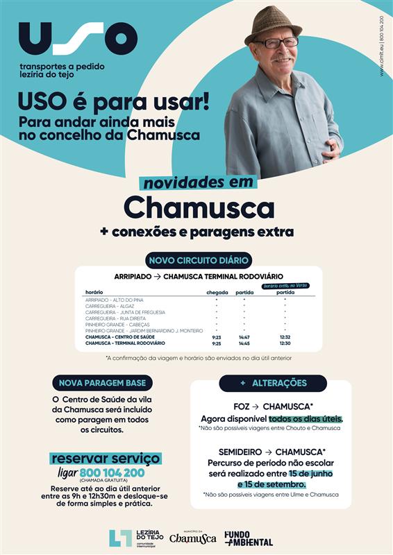 O USO tem agora mais uma rota. O percurso Arripiado - Chamusca já está disponível com paragens no Centro de Saúde e Terminal Rodoviário da Chamusca.