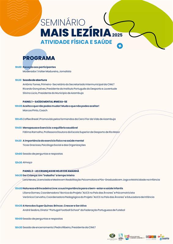 No âmbito do Projeto MAIS Lezíria, a Comunidade Intermunicipal da Lezíria do Tejo (CIMLT) e os seus 11 municípios associados voltam a organizar o Seminário MAIS Lezíria, no próximo dia 5 de abril, onde este ano serão discutidos vários temas ligados à Atividade Física e Saúde.