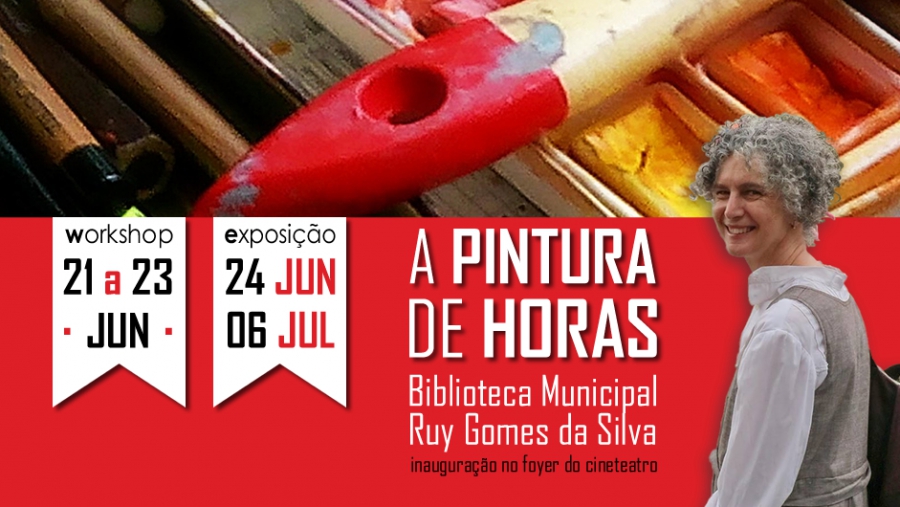 Ana Maria irá dinamizar nos dias 21, 22 e 23 de junho uma oficina de pintura com o tema “A Pintura de Horas”. A artista irá desenvolver esta oficina através de duas vertentes, uma teórica que pretende desenvolver o pensamento criativo e uma prática, onde os participantes irão interpretar algumas das suas obras. O resultado desta oficina irá integrar a exposição do CINartE, a inaugurar no dia 24 de junho no foyer do cineteatro. As inscrições têm um limite máximo de 12 pessoas e é dirigida a maiores de 16 anos. Informações na Biblioteca Municipal da Chamusca.