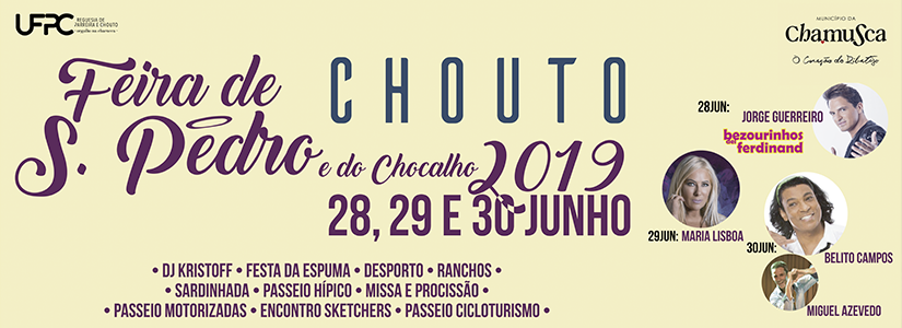 A edição de 2019 da Feira de São Pedro e do Chocalho, que se realiza no Chouto (União de Freguesias de Parreira e Chouto), no concelho da Chamusca, entre os dias 28 a 30 de junho, tem programa de animação um cartaz musical em que se destacam os concertos de Maria Lisboa (29 de junho) e de Belito Campos (30 de junho). Vai haver ainda outras atuações de relevo: Jorge Guerreiro (28 de junho), Bezourinhos del Ferdinand (28 de junho), Dj Kristoff (29 de junho) e baile com Miguel Azevedo (30 de junho).