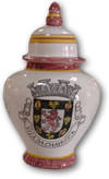 Peças de barro vermelho, um vidrado colorido, tintas de alto fogo, motivos da nossa terra, cozedura quente e lenta, jeito e imaginação.