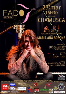 Venha escutar a Maria Ana Bobone, já no próximo dia 23 de Março pelas 16h30 no cine teatro da Chamusca! Será ela, a próxima convidada do 1º festival de fado da Chamusca. Vai fazer-se acompanhar ao piano e pelo FADO TRIO, composto por Eurico Machado na guitarra portuguesa, Pedro Pinhal na viola de Fado e Rodrigo Serrão no contrabaixo. A entrevista será comandada por Luís Salgueiro, locutor da rádio renascença!