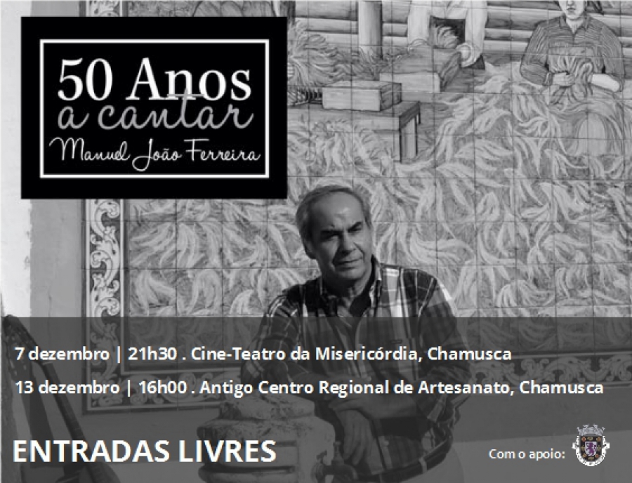 O Município da Chamusca apoia a realização de dois espetáculos comemorativos dos 50 anos de carreira e do lançamento do CD “50 anos a cantar”, do fadista chamusquense Manuel João Ferreira.