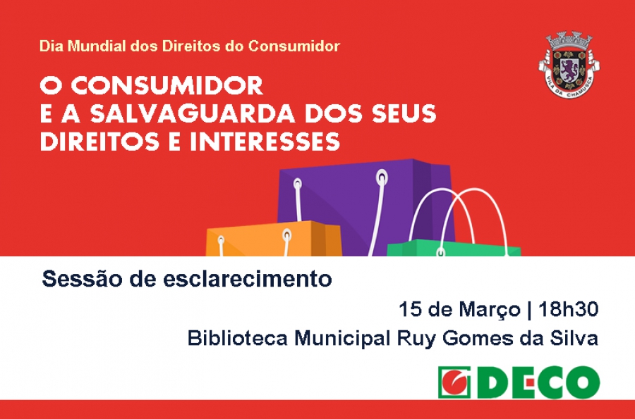 O Município de Chamusca realiza no dia 15 de março, pelas 18h30, na Biblioteca Municipal Ruy Gomes da Silva, uma sessão de esclarecimento denominada de “O Consumidor e a salvaguarda dos seus direitos e interesses” assinalando o dia Mundial dos Direitos do Consumidor, que se celebra nesta data.